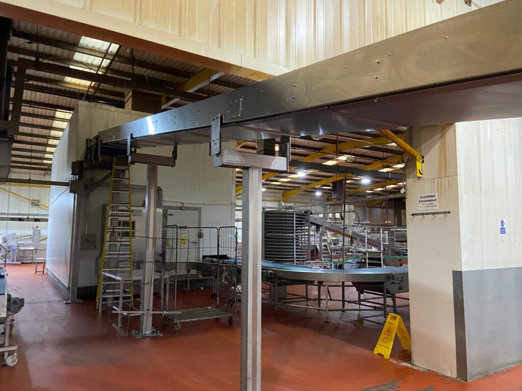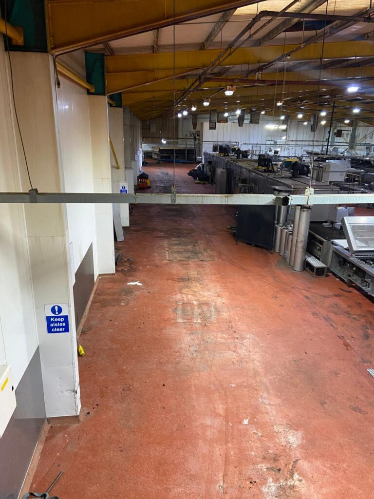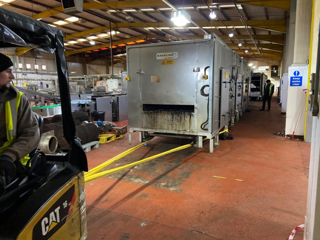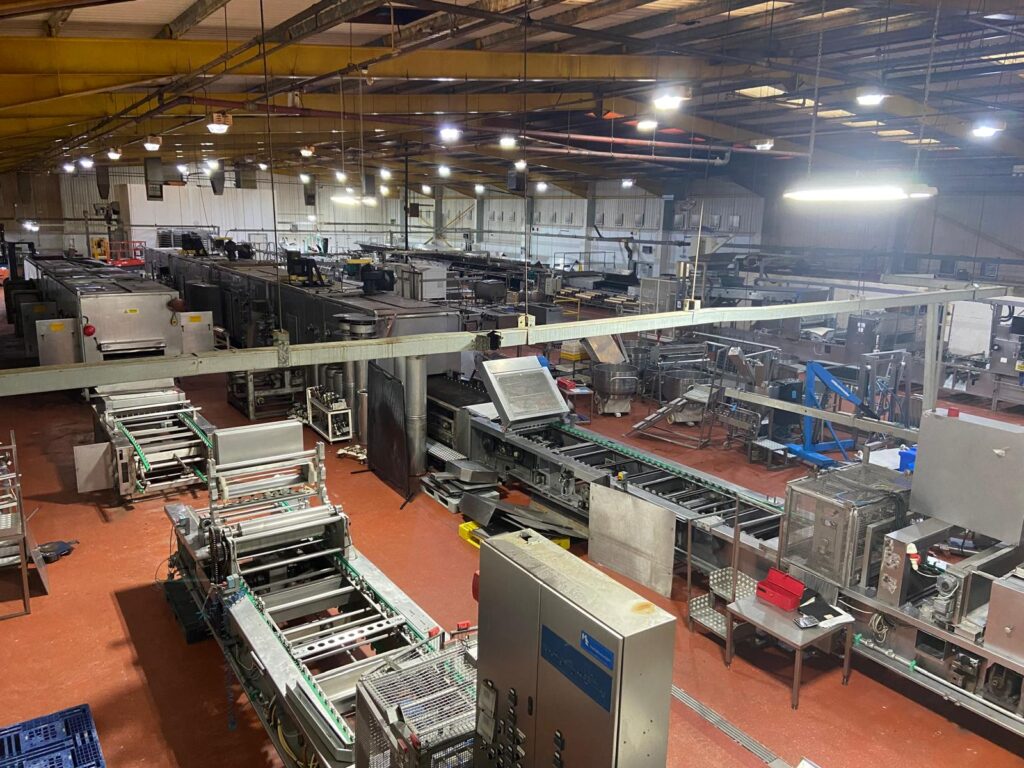 This operational sweet pie production factory was fully cleared and left ready for handover to the landlord including industrial Spooner travelling ovens, spiral freezers and complete packaging lines.